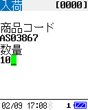 操作キー 操作内容 SCANキー バーコードを読取り数量項目に移行します。 数字キー 商品コードの入力を行います。 ENTキー 商品コードの確定を行い、数量項目に移行します。 BSキー 手入力時にバックスペースとして使用します。 CLEARキー 項目のクリアを行います。未入力時はメインメニューへ移行します。 F3キー 入力済み入荷データを参照します。